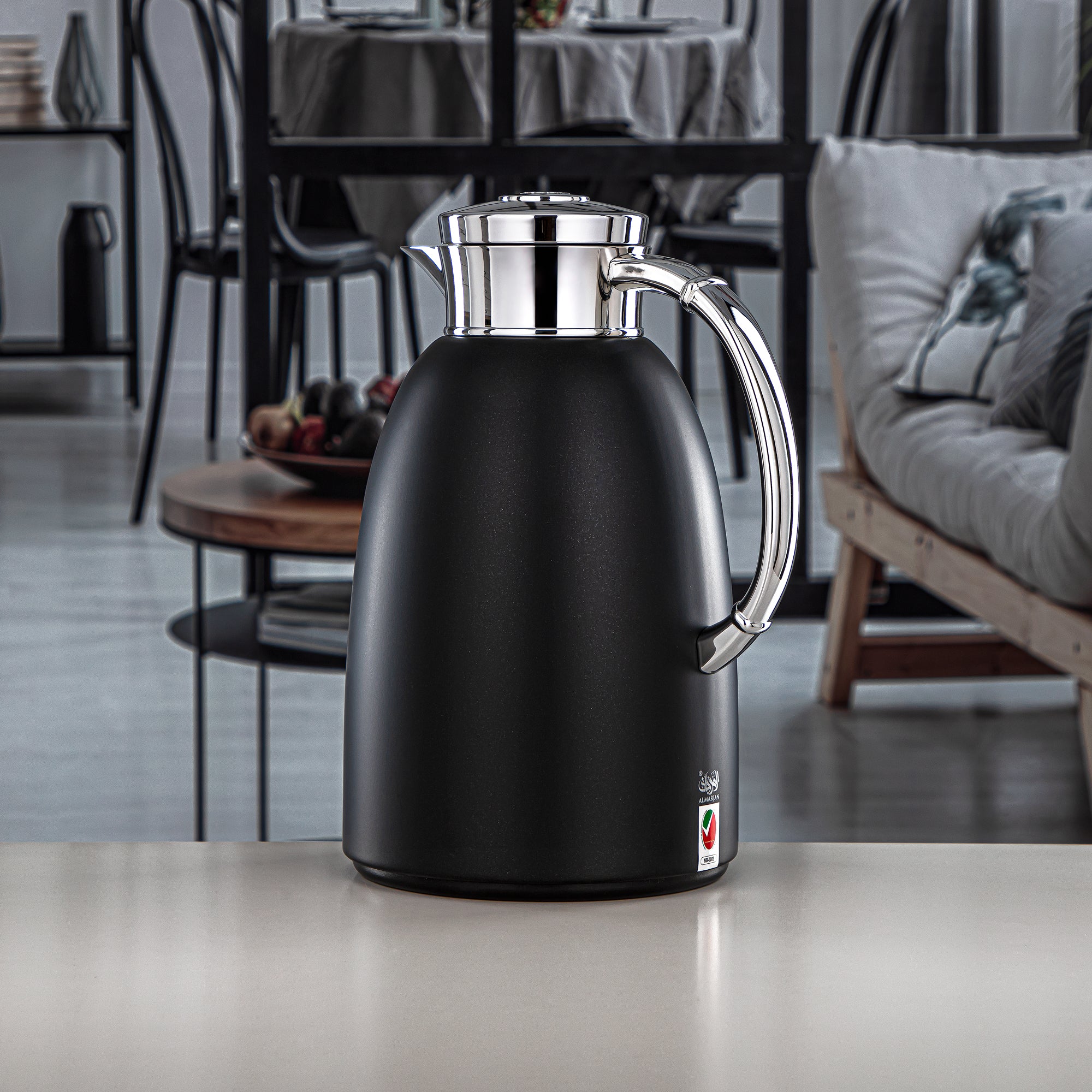 Experience the pinnacle of luxury and convenience with the Almarjan 1.6 Liter Vacuum Flask Black and Silver. This sophisticated flask boasts an insulated glass liner and push button cover to ensure your favorite hot or cold beverage remains perfectly preserved throughout the day. Savor the ultimate flavor and temperature of your beverage with this truly opulent flask.